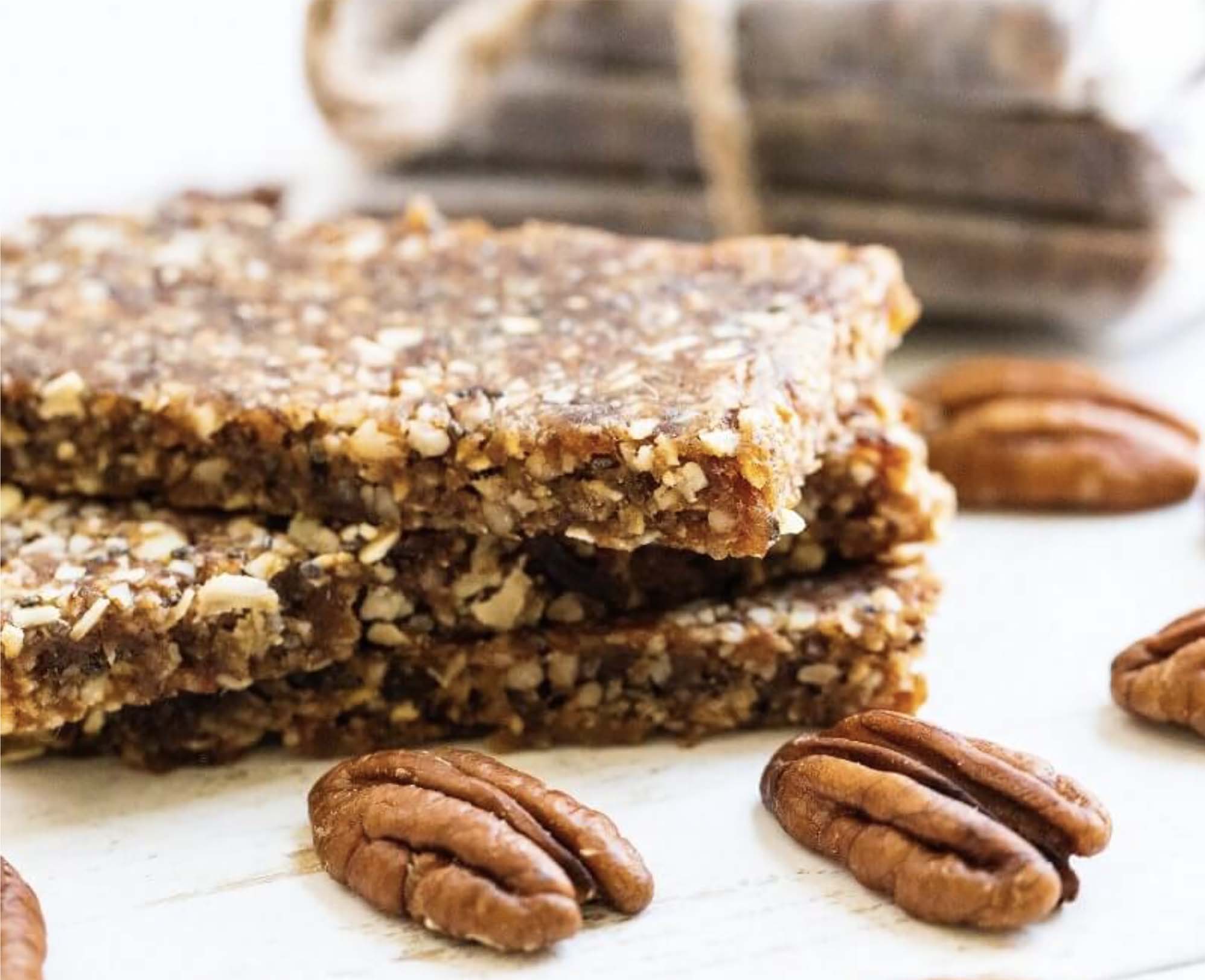 Sweetened naturally with oats, chia seeds, and pecans, these bars are a delightful blend of flavors.